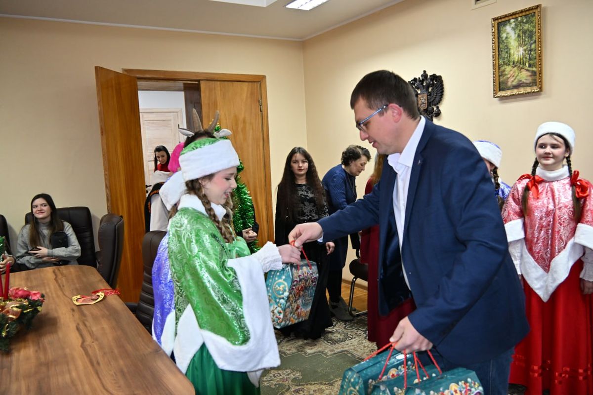 Со старым Новым годом связано много обычаев и традиций: колядование, щедрование, посевание. Считается, что обряд посевания пришёл к нам ещё из дохристианских времён, ведь наши предки встречали Новый год не зимой, а весной и потому обряд посевания связан с надеждой на добрый урожай. Вот и наши учащиеся театрального отделения и отдела сольного народного пения МБУ ДО "ДШИ №2 г. Брянки" не стали забывать русских традиций. Ранним утром 14 января дети пришли поздравить Главу города Брянки Морозова Евгения Олеговича и сотрудников городской администрации с театрально-фольклорной программой "Коляда к нам идёт, мир и счастье к нам ведёт". Ряженные колядники, Дровосек, Ёлочка, Кощей, Ведьмочки, Коза пропели собравшимся традиционные колядки , щедровки и поздравили всех с Новым годом. Театральное представление получилось очень интересным и красочным, за которое детвора получили щедрые подарки. Новогодняя пора-удивительное время, когда все мы, независимо от возраста, начинаем верить в чудеса. Пусть новый год принесёт всем удачу, неиссякаемую энергию и оптимизм!