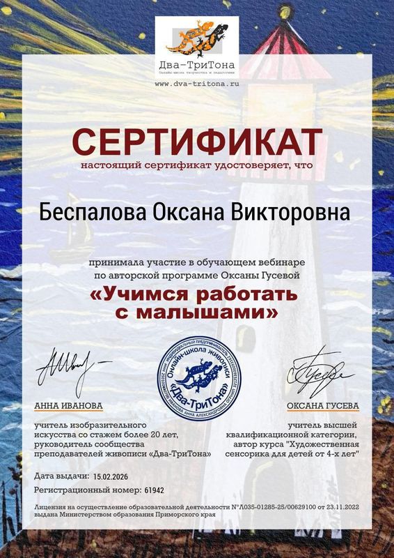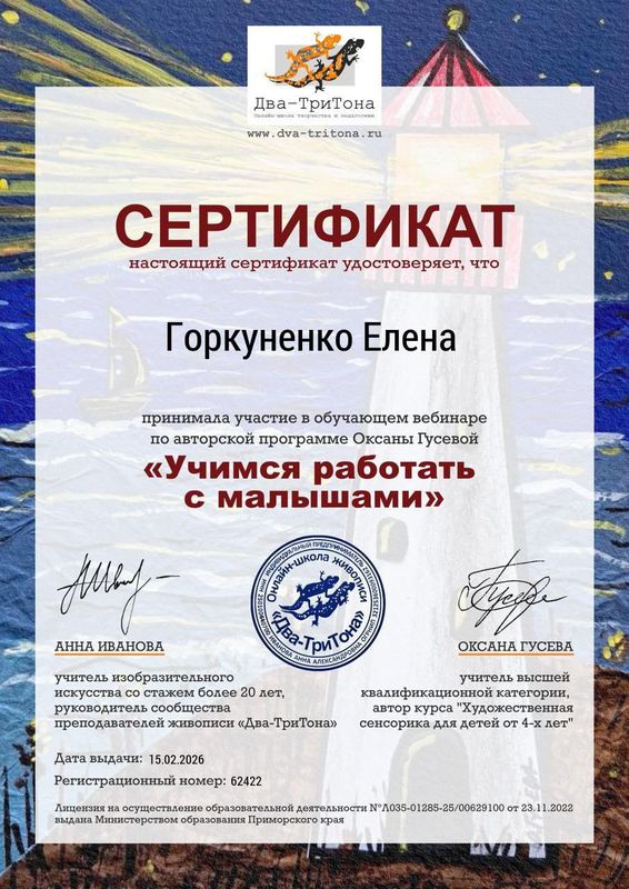Самым младшим художникам , обучающимся в МБУ ДО «ДШИ №2 г.Брянки» 5-6 лет. Ребята посещают занятия художественного творчества в рамках программы подготовительной группы нашей школы. И чтобы работать с такими юными художниками, наши преподаватели тоже не перестают учиться, повышать свой уровень квалификации, искать новые идеи для занятий, углублять свои знания. С этой целью Беспалова Оксана Викторовна и Горкуненко Елена Юрьевна приняли участие в обучающем вебинаре по авторской программе Оксаны Гусевой «Учимся работать с малышами». Во время вебинара были рассмотрены актуальные вопросы и проблемы в процессе работы с маленькими художниками, разобраны особенности работы с детьми дошкольного и младшего школьного возраста и поиск индивидуального подхода, проведен творческий мастер-класс, произошел обмен опытом с коллегами из разных уголков нашей необъятной Родины. Дружеская атмосфера, полезная информация и новые идеи – результат встречи!