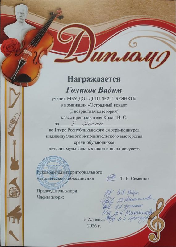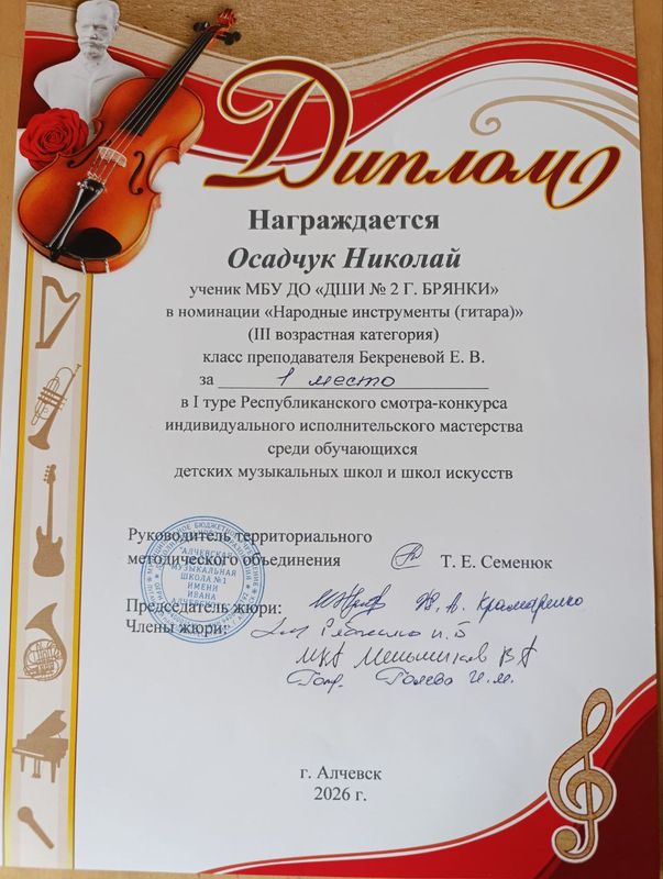 В мире искусства нет потолка для совершенства, но есть вершины, которые особенно приятно покорять. Для юных дарований нашей школы искусств такой вершиной стал I тур Республиканского конкурса индивидуального исполнительского мастерства, который проходил на базе МБУ ДО " Алчевская детская музыкальная школа №1 им. Ивана Алчевского" 20 февраля 2026 года. Этот конкурс, собравший лучших учащихся, стал настоящим праздником творчества и серьезным испытанием для его участников. Поездка на конкурс такого уровня — это всегда волнительное событие. За плечами наших ребят остались долгие часы репетиций, сомнения и волнения.