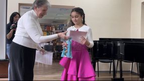 3 апреля в луганском колледже государственной академии культуры и искусств имени Михаила Матусовского(ЛГАКИ) состоялся заключительный этап совместного творческого проекта ,, Ах, этот танец!,, ( из цикла,, В мире искусств,,). Проект завершили Круглый стол, участники которого представили теоретические доклады и Заключительный концерт представителей колледжа и школ искусств. Принять участие в этом мероприятии пригласили обучающихся нашей школы -- Панчук Софию, класс преподавателя Воскобойник Инны Леонидовны и Дымовских Артема , класс преподавателя Мишиной Галины Васильевны. Ребята достойно выступили со своими концертными номерами и были награждены грамотами и сладкими подарками.