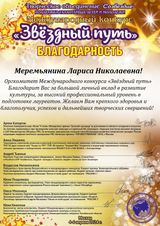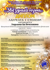 4-6 апреля 2024 года в г. Москва состоялся Международный конкурс " Звёздный путь". МБУ ДО " ДШИ №2 Г. БРЯНКИ " представила Гладышева Ева, учащаяся по классу фортепиано (преп. Меремьянина Лариса Николаевна). Целью конкурса было выявление и всесторонняя поддержка талантливых и перспективных детей, способствование объединению детей разных национальностей на принципах мирного сосуществования, толерантности и творческого взаимопонимания. По результатам конкурса Ева награждена дипломом лауреата 1 степени! Поздравляем!!! Так держать!!!