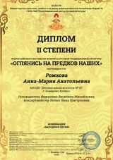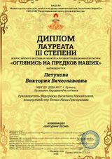 С 24 по 27 ноября 2024 года в городе Йошкар-Ола проходил Всероссийский фестиваль-конкурс русской традиционной культуры «Оглянись на предков наших». Задача конкурса — выявление и поддержка лучших фольклорных самодеятельных творческих коллективов и отдельных исполнителей русского традиционного искусства; возрождение утерянных и забытых народных традиций, обрядов, ремесел; организация обмена опытом и знаниями в области русской народной культуры. Конкурсная программа включала 11 номинаций: «Фольклорная песня», «Народная песня», «Фольклорный танец», «Народный танец», «Русско-славянская фолк-музыка», «Русские традиционные праздники, обряды и народные игры», «Сказители», «Исполнители на народных инструментах», «Реконструктор русского костюма», «Исследователь», «Декоративно-прикладное творчество». Нашу школу в заочном формате в номинации «Народная песня» представили 5 участниц: Левченко Арина, Ломакина Александра, Петухова Виктория, Рожкова Анна-Мария, Чибиряк Ева (класс преподавателя Федоренко В. М. и концертмейстера Белых Н. Г.) По результатам конкурса: Дипломом Лауреата II степени награждена Левченко Арина; Дипломами Лауреата III степени награжденsы Петухова Виктория и Чибиряк Ева; Дипломом I степени награждена Ломакина Александра; Дипломом II степени награждена Рожкова Анна-Мария. Мы поздравляем девчонок и желаем им дальнейших творческих успехов!!!
